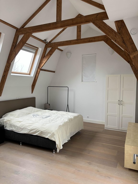 - Hoge plafonds met houten balken, veel lichtinval;
